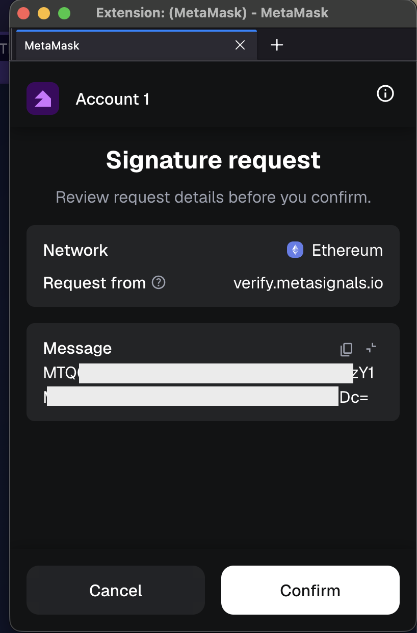 Check that the redirect URL starts with https://verify.metasignals.io/nft/