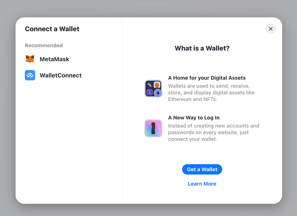 Currently MetaMask and WalletConnect are supported. (WalletConnect is integrated with the majority of major Web3 wallets.)